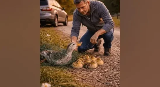 On a quiet rural road, a distressing scene unfolded as a mother duck found herself hopelessly entangled in a net, her vulnerable ducklings huddled anxiously nearby. The Desperate Plea The…